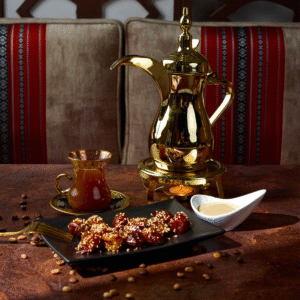 Light roast coffee with cardamon, dates with sesame, tahini creamy sesame